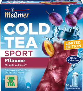 Mit dem Kaltaufguss-Tee COLD TEA SPORT Pflaume mit Zink und Eisen haben Konsumentinnen und Konsumenten jetzt eine weitere Möglichkeit, den Geschmack nach saftigen Pflaumen zu genießen. Der fruchtig-erfrischende Kaltaufguss-Tee ist die optimale Begleitung bei allen sportlichen Aktivitäten und eine willkommene Abwechslung zu reinem Wasser.